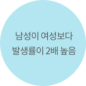 일반적으로 남성이 여성보다 2배정도 발생위험도가 높은 것으로 알려져 있습니다.